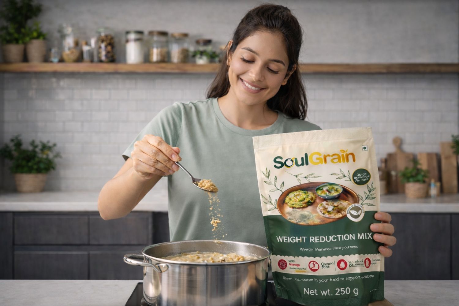 SoulGrain is built around this belief. Inspired by Ayurvedic wisdom that has always valued balance over excess, and shaped by modern nutrition science, it supports your body with natural, plant-based nourishment that blends into real food without overpowering taste.